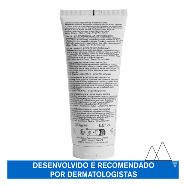 Uriage Xémose Creme Emoliente tem uma textura cremosa e envolvente, de rápida absorção e que espalha facilmente. Estes são os principais ingredientes: