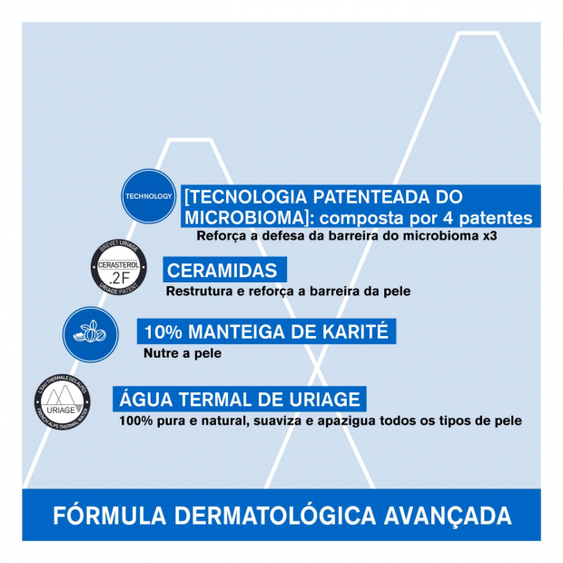 - Água termal Uriage para uma ação suavizante e equilibrante da barreira microbiana