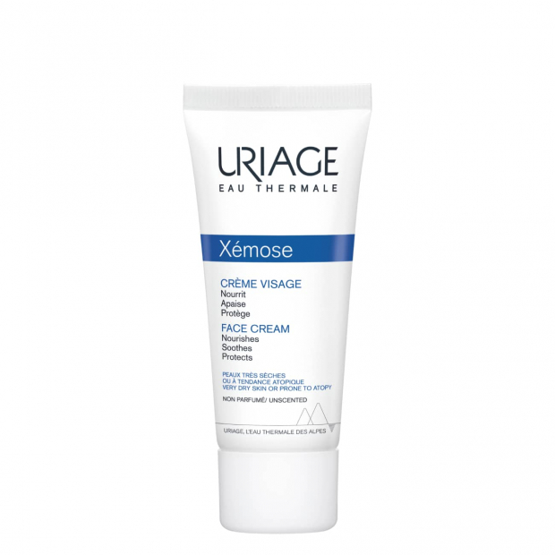 Uriage Xémose Creme de Rosto contém água termal Uriage que apresenta uma ação suavizante e anti-irritante. Enriquecido com cerasterol-2F® que atua de forma reestruturante e calmante sobre a pele seca. Contém, ainda, manteiga de karité, de propriedades nutritivas e glicerina que ajuda a manter a hidratação correta da pele.