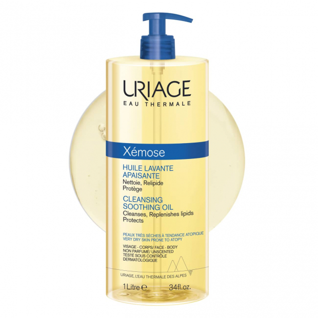 Uriage Xémose Óleo de Limpeza tem uma textura gel-creme, com cerasterol-2F® e água termal Uriage para uma ação de limpeza suavizante, reestruturante, calmante, nutritiva e equilibrante.