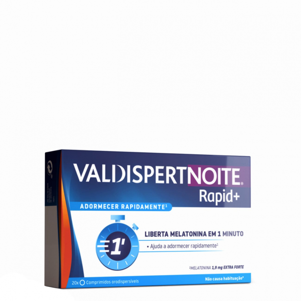 Valdispert Noite Rapid+ Comprimidos é um suplemento em comprimidos orodispersíveis de absorção rápida, com melatonina (1.9mg) para uma dupla funcionalidade: uma ação rápida de libertação imediata da melatonina e prolongada para a libertação gradual da melatonina restante.