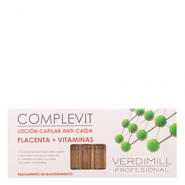 Verdimill Complevit Ampolas Tratamento de Manutenção tem uma fórmula que combina extratos placentários, vitamina H, vitaminas do grupo B, enzimas e aminoácidos de enxofre, para uma ação nutritiva, fortificante, protetora e antiqueda.