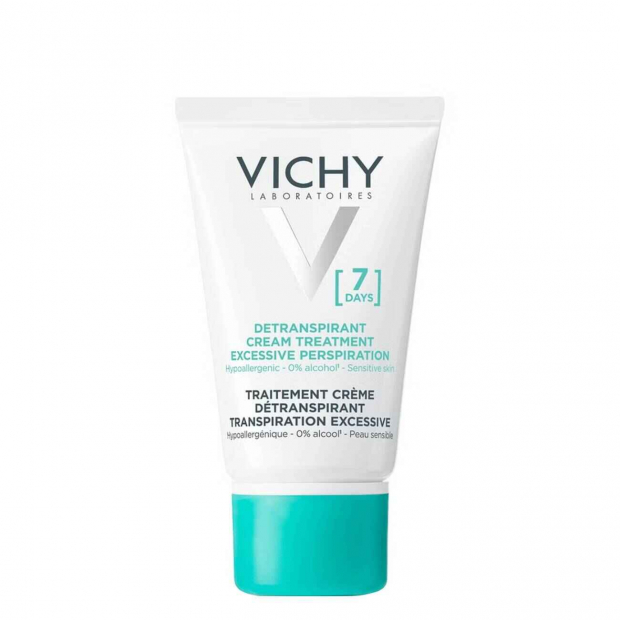 Vichy Desodorizante Creme Transpiração Intensa é um creme de tratamento anti-transpirante, especialmente indicado para mulheres e homens que sofrem de transpiração intensa. A sua formulação contém constituintes ativos que possuem uma ação que atua diretamente nas glândulas sudoríparas(responsáveis pela produção de suor), diminuindo semana após semana a transpiração. A sua textura em creme, não oleosa e de rápida absorção, não mancha a pele. Sem álcool. Sem parabenos. Hipoalergénico. Não comedogénico.