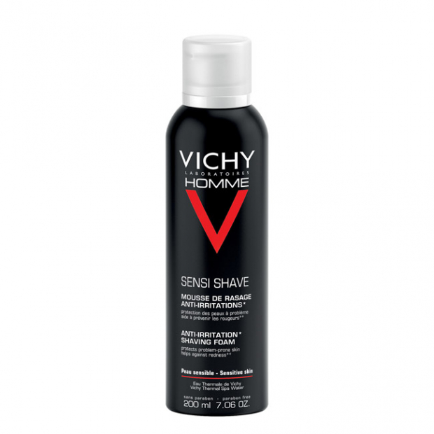 Vichy Homme Sensi Shave Mousse de Barbear tem uma textura leve e cremosa, com uma fórmula exclusiva: