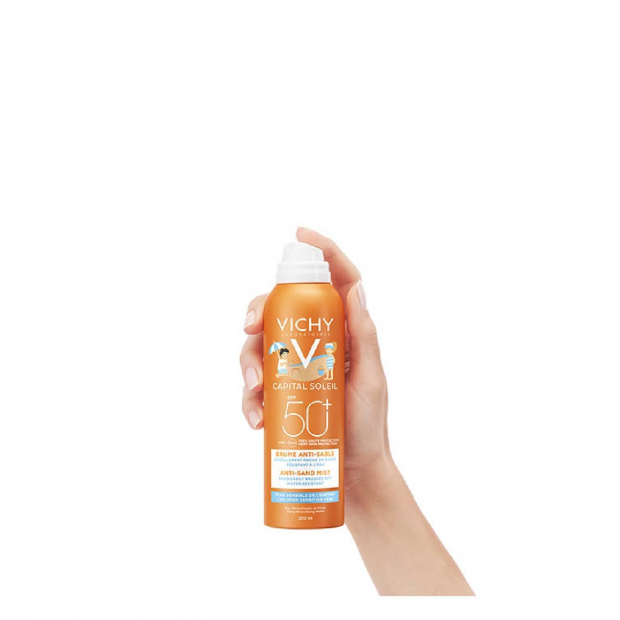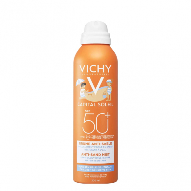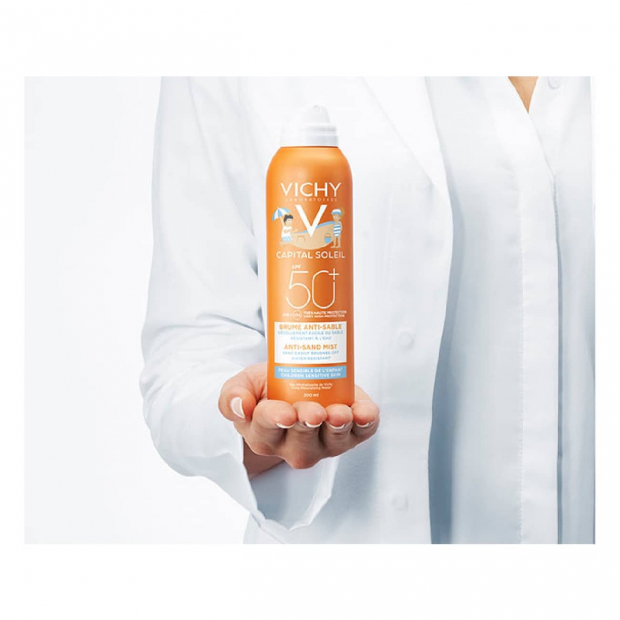 Se procuras um protetor solar prático e eficaz para a pele sensível das crianças, Vichy Capital Soleil Kids Bruma Solar Anti-Areia SPF50+ é ideal.