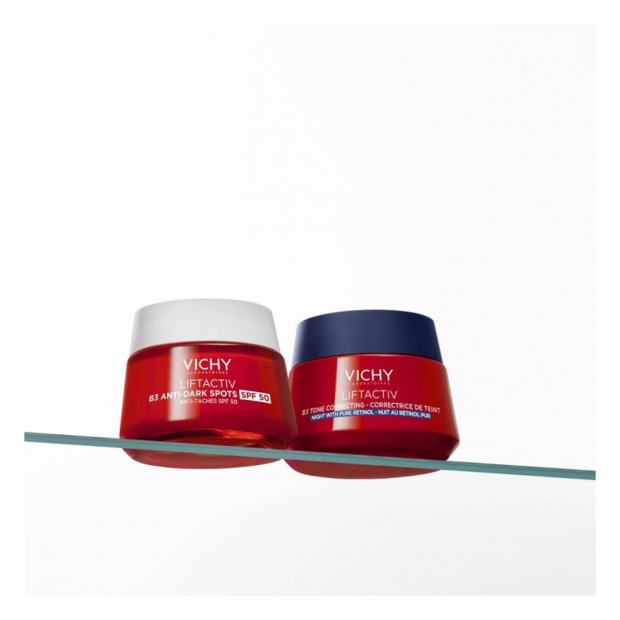 Vichy LiftActiv B3 Creme de Noite Antimanchas tem uma textura leve e de rápida absorção, numa fórmula com: