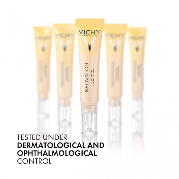 Aplica Vichy Neovadiol Peri e Pós-Menopausa Creme Olhos e Lábios de manhã e à noite, no contorno de olhos e lábios, com uma massagem suave.