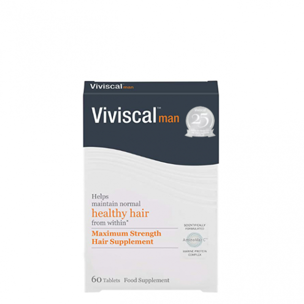 Viviscal Man é um suplemento antiqueda e crescimento em comprimidos para homem, para o cuidado dos cabelos frágeis e com tendência a queda.
