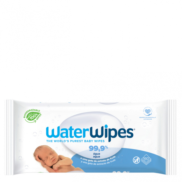 WaterWipes Bio Toalhitas são toalhitas suaves em tecido biodegradável, com apenas 2 ingredientes naturais: água (99.9%) e extrato de sementes de toranja para uma ação de limpeza suave, condicionadora e purificante.