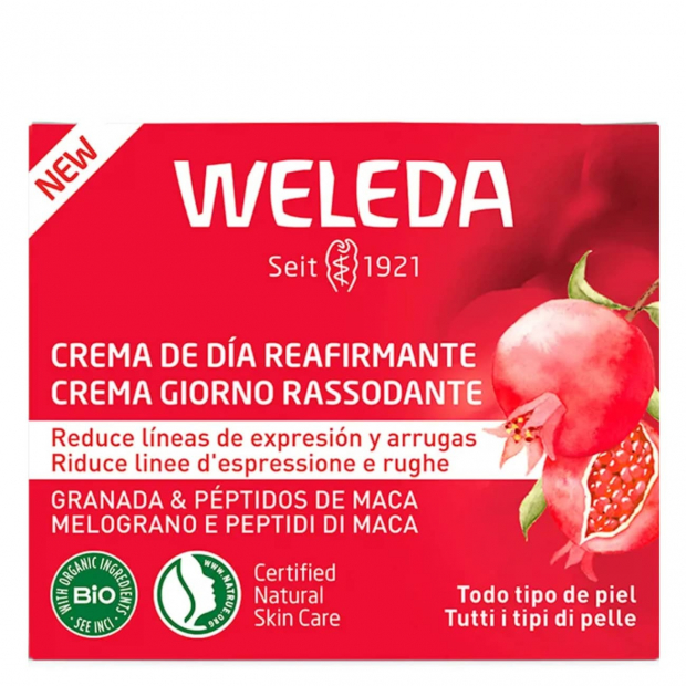 Weleda Romã Creme de Dia Refirmante tem uma textura nutritiva e confortável, rica em: