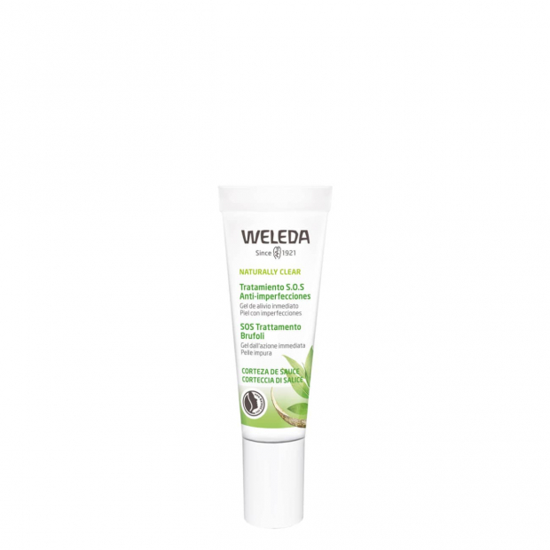 Weleda Tratamento SOS Anti-imperfeições contém extrato de casca de salgueiro, extrato de raiz de alcaçuz e água destilada de hamamélis para um efeito antimicrobiana, suavizante, calmante e antioxidantes. Associa ácido salicílico para promover a renovação da pele e evitar que a imperfeição deixe marca.