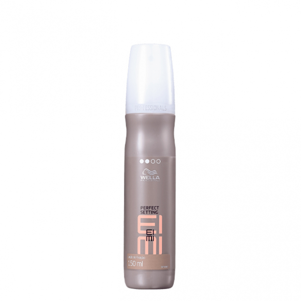 Wella EIMI Perfect Setting Spray Loção de Styling tem uma textura leve, com polímeros formadores de uma película protetora invisível para uma ação fixante, hidratante, suavizante e iluminadora.